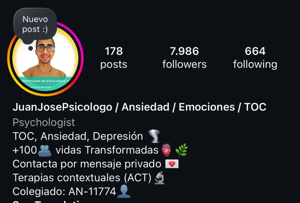 Tiene su propia Consultora Presencial y Online, especializado en Psicoterapia, Ansiedad – TDAH y Adicciones.